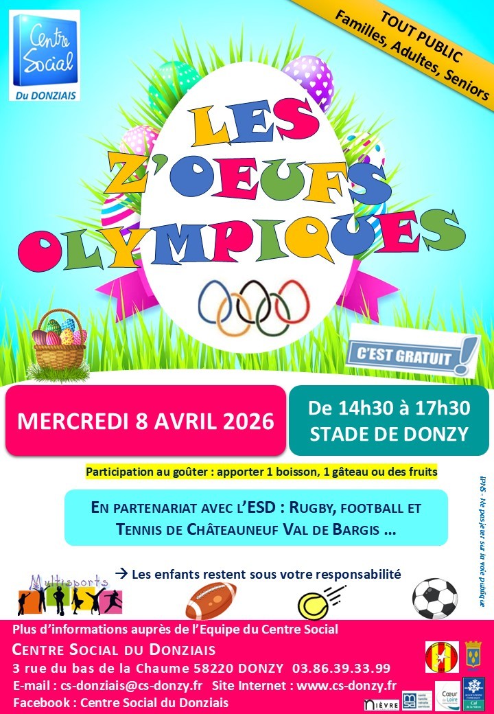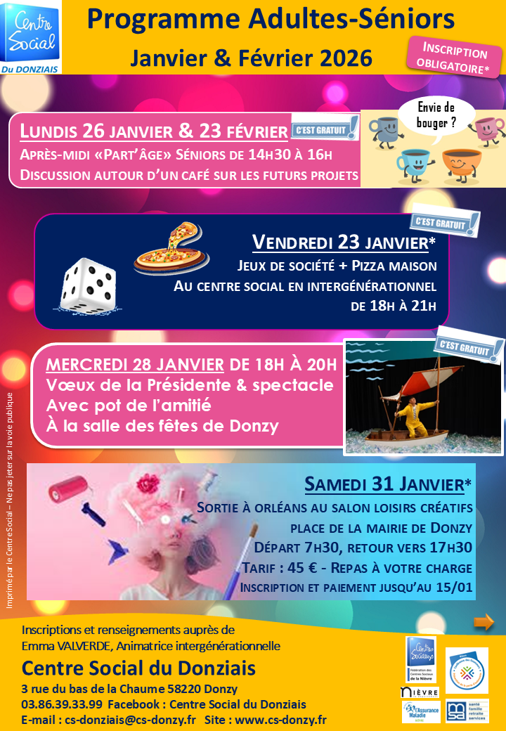 Adultes -Séniors Pour plus d'informations, contactez Emma VALVERDE au 03.86.39.33.99 Email : cs-donziais@cs-donzy.fr