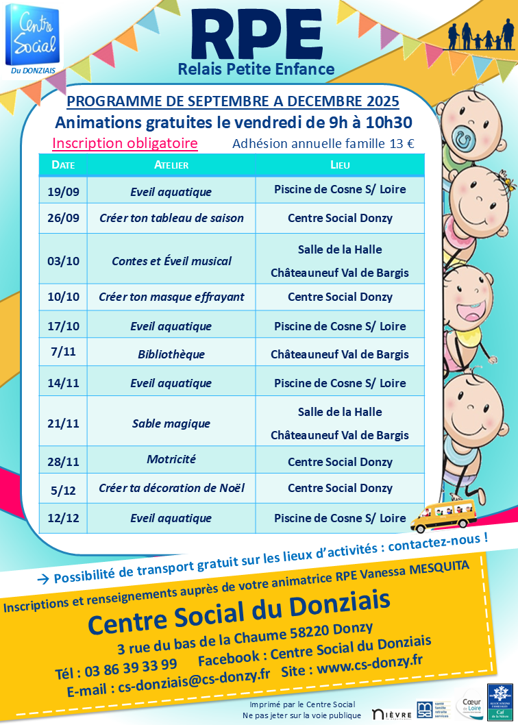 obligatoire. Adhésion annuelle au Centre Social : 13 €.