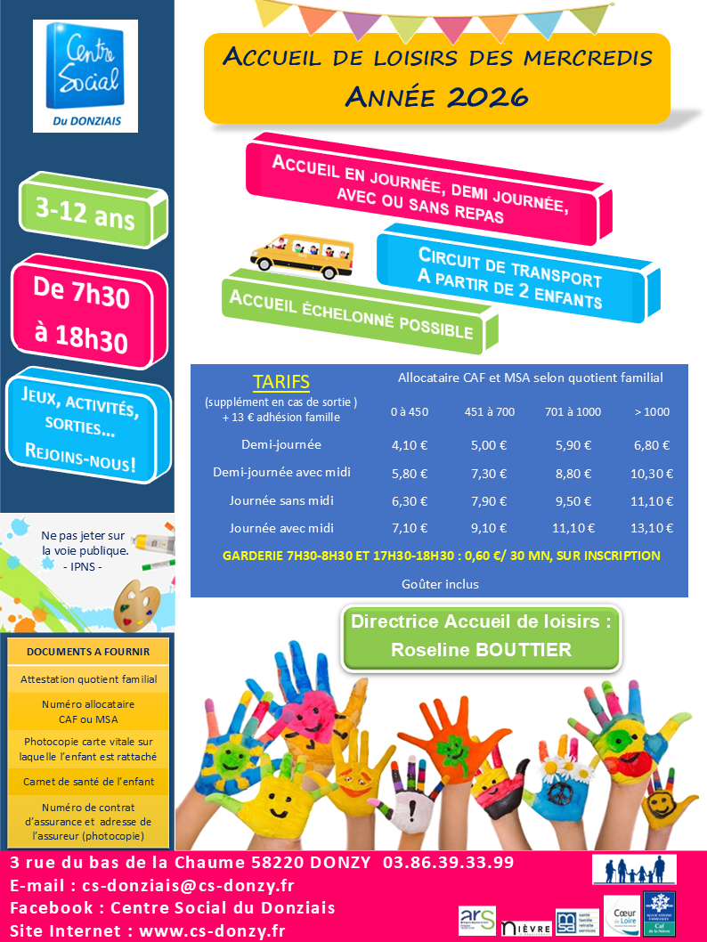 Nous accueillons les enfants de 3 à 6 ans domiciliés sur le territoire Donziais et également les enfants hors canton dont les parents travaillent sur le territoire du Donziais (en fonction des places disponibles).