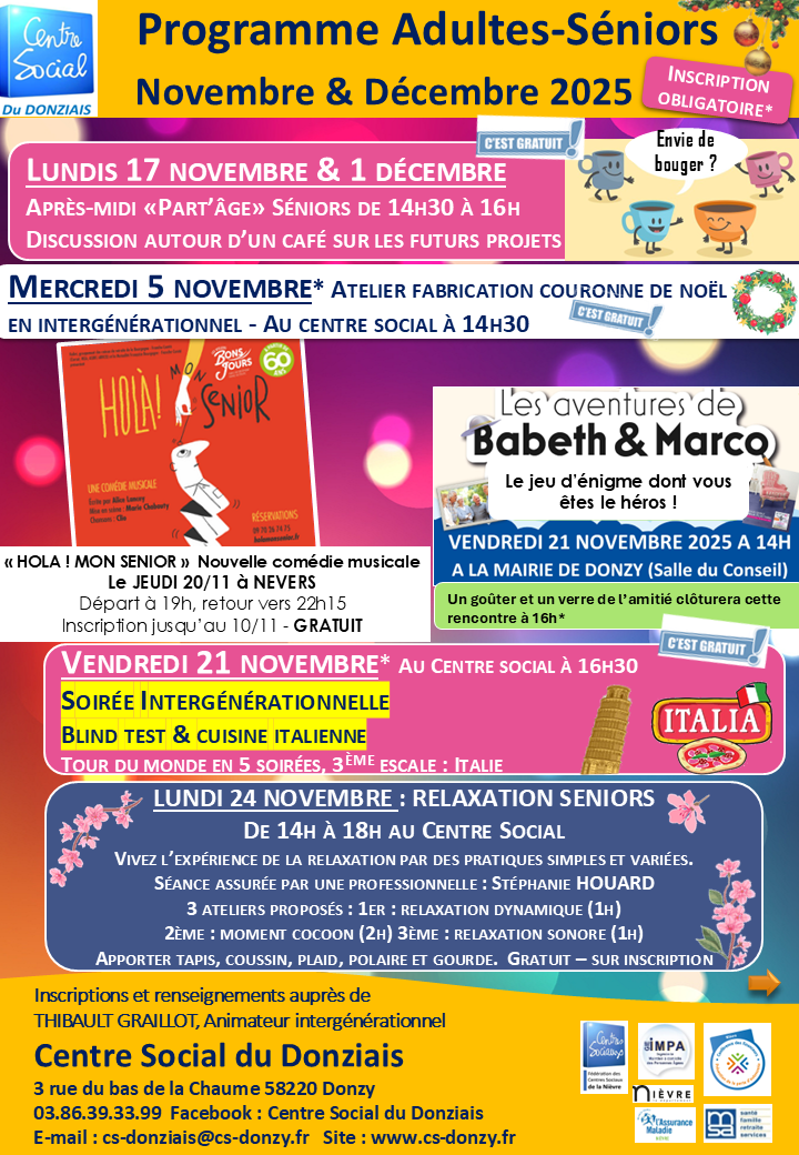 Adultes -Séniors Pour plus d'informations, contactez Thibault GRAILLOT au 03.86.39.33.99 Email : cs-donziais@cs-donzy.fr